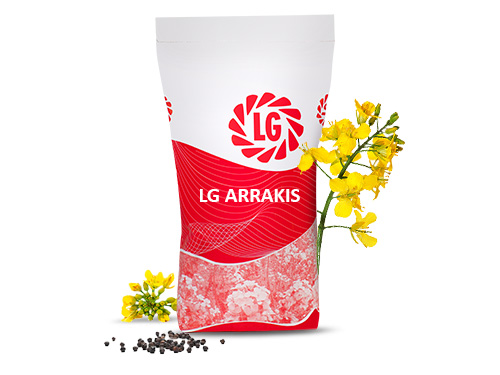 LG ARRAKIS er en nyhed med 2 års afprøvning. I 2023 lå den på forholdstal 105 i værdiafprøvningen og i 2024 på forholdstal 96 i landsforsøgene. Sorten har en god etablering og efterårsvækst uden risiko for at blive for voldsom. Sorten har tendens til strækning af vækstpunktet i efteråret. Hvis afgrøden fremstår tæt i efteråret, og der er milde vejrforhold, bør sorten derfor vækstreguleres.